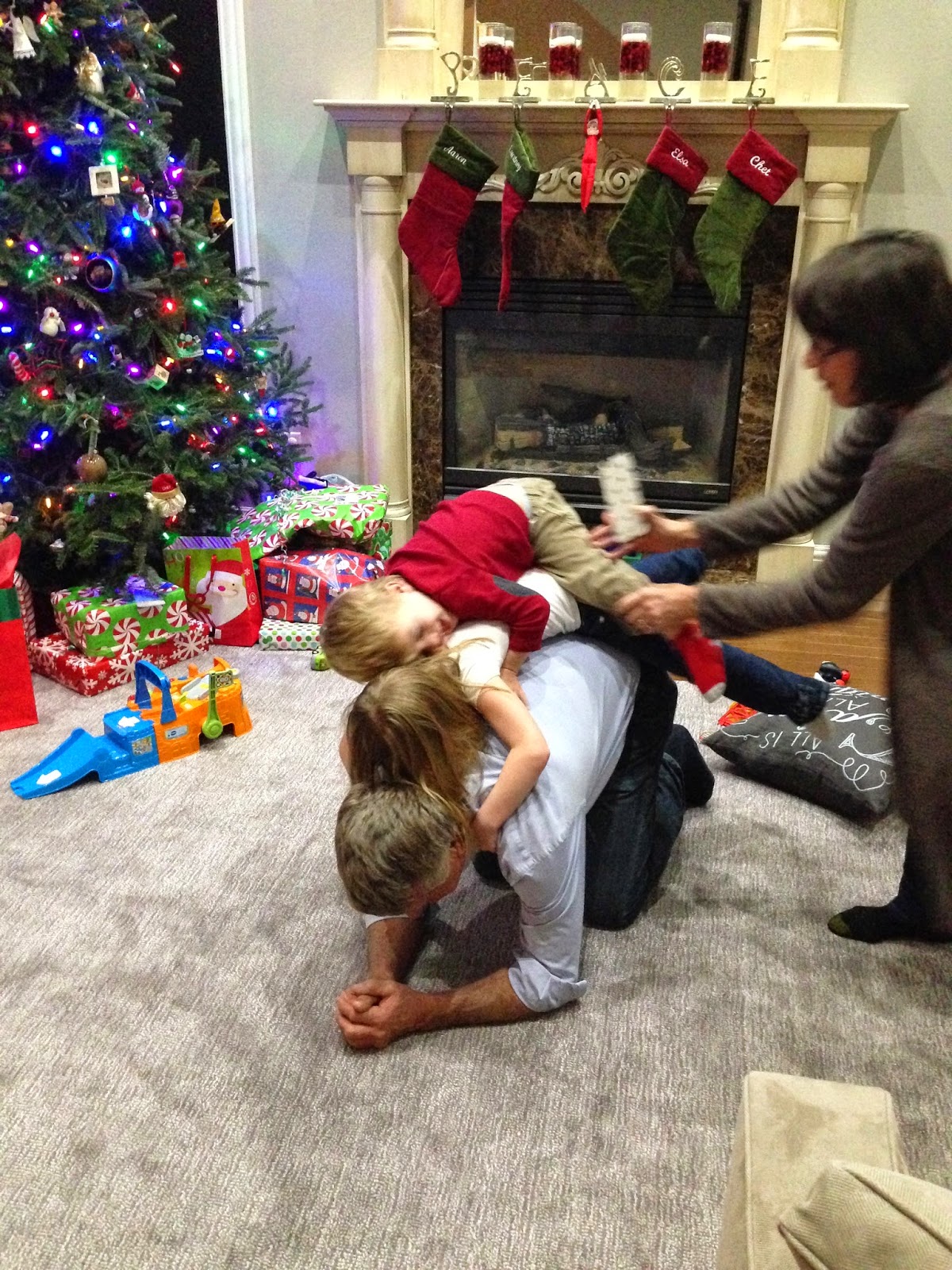My parents came in town Friday and left Monday. We had a lot of fun! We made the decision not to tell Elsa because she would have been asking nonstop the past month "Is today the day they are coming?". They arrived just in time to pick Elsa up from school and I was told her expression was priceless! I am sure my dad is still recovering from the kids climbing all over him….